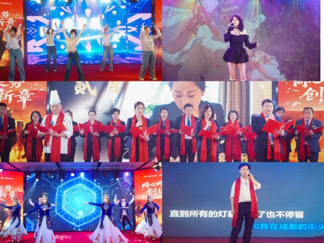 表彰环节过后,精彩纷呈的联欢会节目汇演正式上演,各部门员工与特邀嘉宾闪亮登场,带来了一场视听盛宴。客房部舞蹈《蒸蒸日上》舞步铿锵,开启表演序幕;乌鲁木齐职业大学副教授方方老师的独唱《西部放歌》高亢嘹亮,尽显民族风情;餐饮部舞蹈《美丽的姑娘》、财务部独舞《漂亮》灵动优美,展现别样风采;邓博远小朋友带来的经典川剧《变脸》技艺精湛,引得现场掌声雷动;销售部独唱《日不落》《情深深雨蒙蒙》旋律动人,氛围感拉满;佳适尚品音乐厅的欢乐二人转《小拜年》诙谐幽默,让现场笑声不断;前厅部独唱《Davy Jones》、工程安保部独唱《成都》风格各异,唱出不同韵味;媒宣组舞蹈《第一天+爱的主打歌》活力四射,点燃现场热情;前厅部舞蹈《赛乃姆》融合民族特色,舞姿曼妙,尽显西域风情;管理层带来的诗朗诵《我们是意气风发的酒店人》慷慨激昂,尽显酒店管理者的担当与风采,也引发全体员工的强烈共鸣。